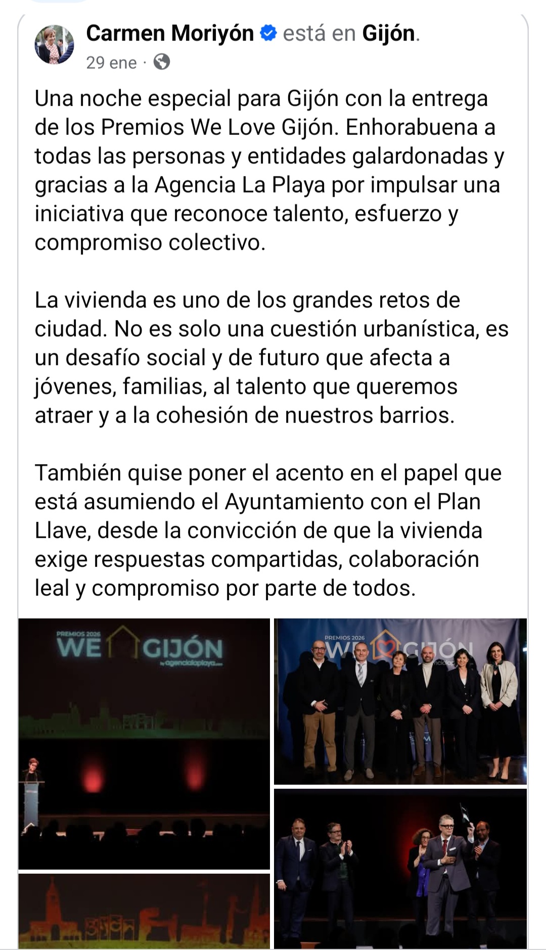 La 1ª edición de los Premios We Love Gijón ha nacido con un objetivo muy claro: reconocer y dar visibilidad a las personas, empresas e instituciones que contribuyen a hacer de Gijón una ciudad mejor. Una iniciativa impulsada por Agencia La Playa, independiente, sin ánimo de lucro y totalmente ajena a cualquier interés político.